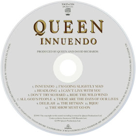 Innuendo is the fourteenth studio album by the British rock band Queen, released on 5 February 1991 by Parlophone in the United Kingdom and by Hollywood Records in the United States. Produced by David Richards and the band, it was the band's final studio album to be released in Freddie Mercury's lifetime and also their most recent one to be composed entirely of new material. It reached the No. 1 spot on the UK album charts and stayed at that position for two weeks, and also peaked at No. 1 in Italy, the Netherlands, Germany, Switzerland, staying at No. 1 for three weeks, four weeks, six weeks, and eight weeks, respectively. It was the first Queen album to go Gold in the US upon its release since The Works in 1984.